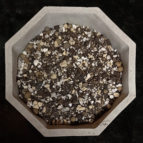 Iremos añadiendo más sustrato y lo iremos presionando para sujetar bien la raíz, llenaremos la maceta con sustrato bien apretado ya que en seco ocupa más espacio y una vez que reguemos por primera vez, perderá mucho volumen.