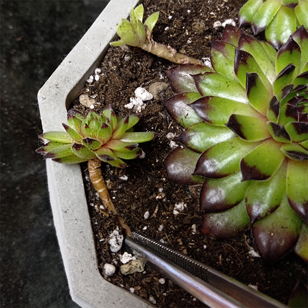 Y el riego? No, nos hemos olvidado de regar la planta, vamos a esperar unos días para evitar que cojan hongos las partes que cortamos, como los estolones o por si al plantar nuestra suculenta se rompió alguna raíz.